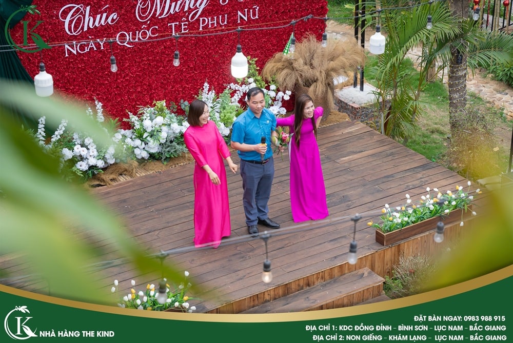 Ngay từ khi đặt chân đến The Kind, các cô giáo đã bị thu hút bởi không gian lãng mạn, rực rỡ sắc hoa và cách trang trí tinh tế. Những chiếc đèn lồng lung linh, tiểu cảnh tươi xanh cùng sân khấu được thiết kế đặc biệt giúp ngày lễ trở nên trọn vẹn hơn bao giờ hết.